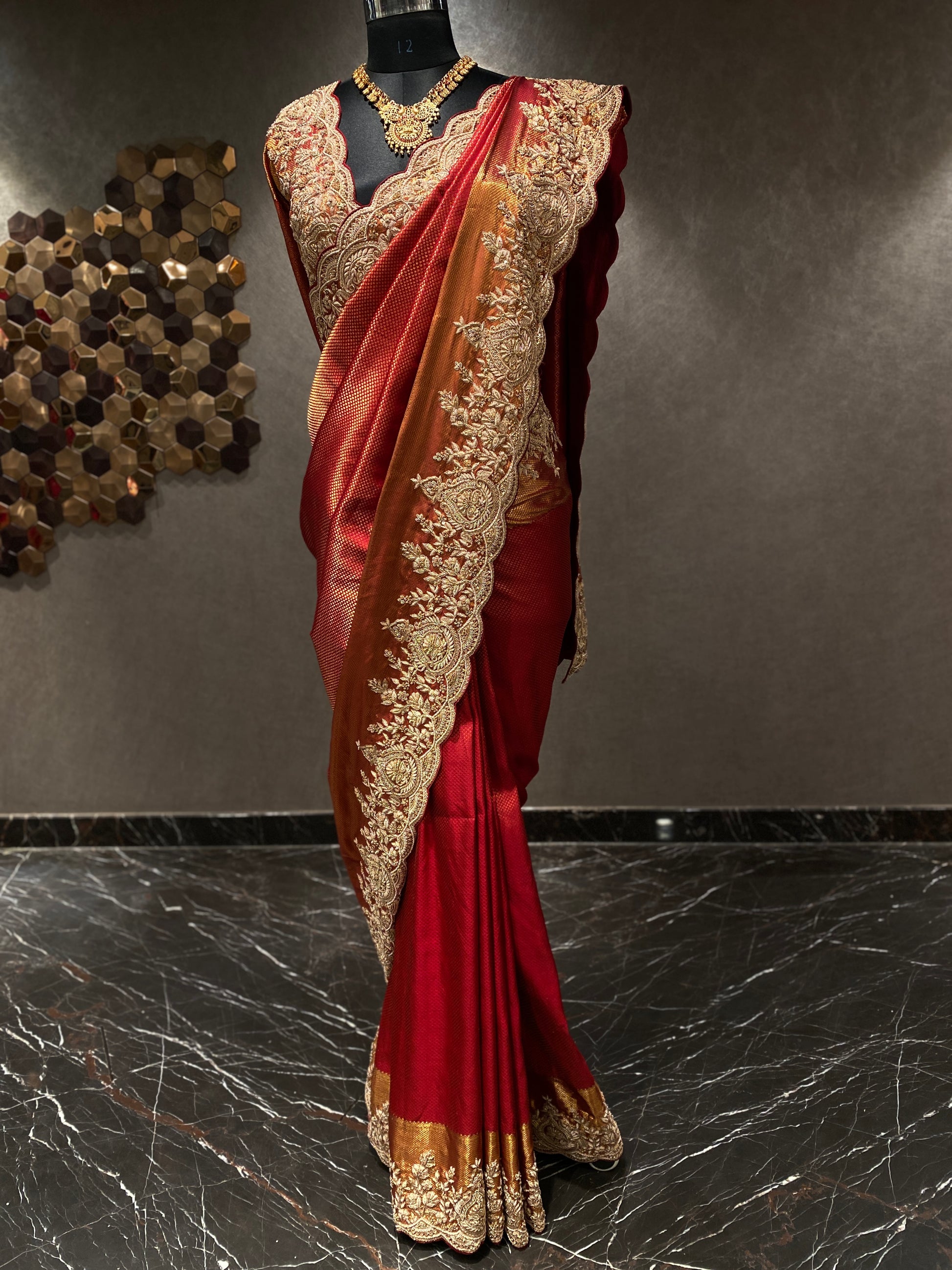 RED EMBROIDERED KANJIVARAM SAREE